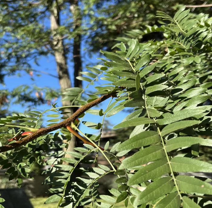 Árbol de tres espinas, falso algarrobo Introducido, originario de Norteamérica.Su altura es hasta los 45 m. Tipo caducifolio.Hojas compuestas, pinadas y bipinadas; folíolos elípticos.Flores hermafroditas, zigomorfas, verde amarillentas.Fruto es una legumbre de hasta 40 cm de largo, algo retorcida. Ubicación en el Campus: En las Facultades de Veterinaria, Agronomía y en el parque de Finanzas se puede apreciar un ejemplar. Visualizar ficha Turdus falklandii