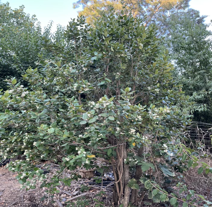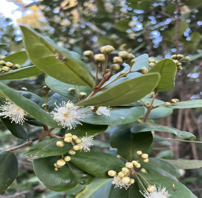 Mirto europeo, Arrayán Nativo de EuropaÁrbol pequeño de hasta 5 metros de alto en condiciones naturales.Tipo: PerennifolioMuy aromáticas, de color verde intenso, opuestas. Flores blancas solitarias con numerosos estambres sobre pedúnculos largos de 1.5 a 2.5 cm.El fruto es una baya negruzca muy llamativa. Ubicación en el Campus: Próximo a las dependencias de parques y jardines. Visualizar ficha Especies asociadas presentes en el campus Sturnella loyca Crinodendron patagua Molina